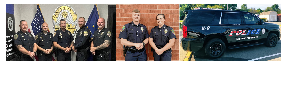 The Greenfield Police Department is staffed by 44 officers, three civilian staff, and one victim advocate from Alternatives, Inc. Greenfield Police Department provides the following services for the City of Greenfield: