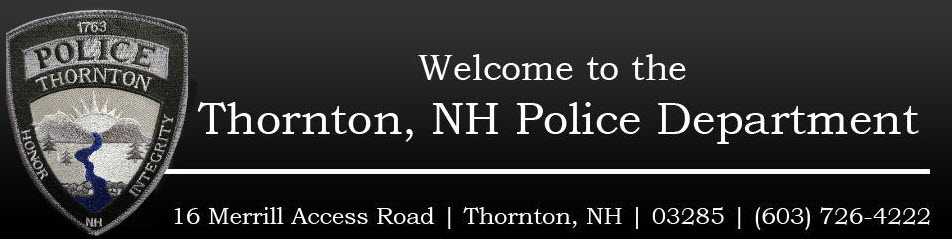 The Thornton Police Department is based on a community policing value system, this values system permits our officers to utilize teamwork strategies that are designed to help the community with their needs. Our goals and objectives are intended to help us reach our vision of “being a top community oriented policing agency in the State of New Hampshire” and coincides with our mission which in part reads make “the town a safer, more desirable place to live, work, and visit”. Our officers are of strong moral turpitude and work well together towards our goals. If you are looking to be part of an exceptional team, then look no further than the Thornton Police Department.
